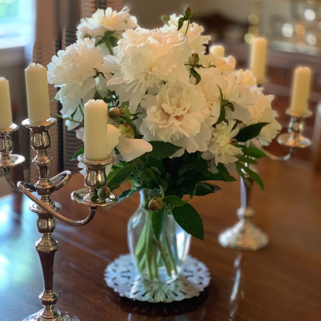Colorful peonies always make beautiful full bouquets, so when the time presents itself I grab the snippers and go to town. There are still buds and blooms out front, so hopefully I’ll get a second wave after the weather breaks. Until then, I have to think of what I’ll make for dinner so we can enjoy these beauties on the dining room table.